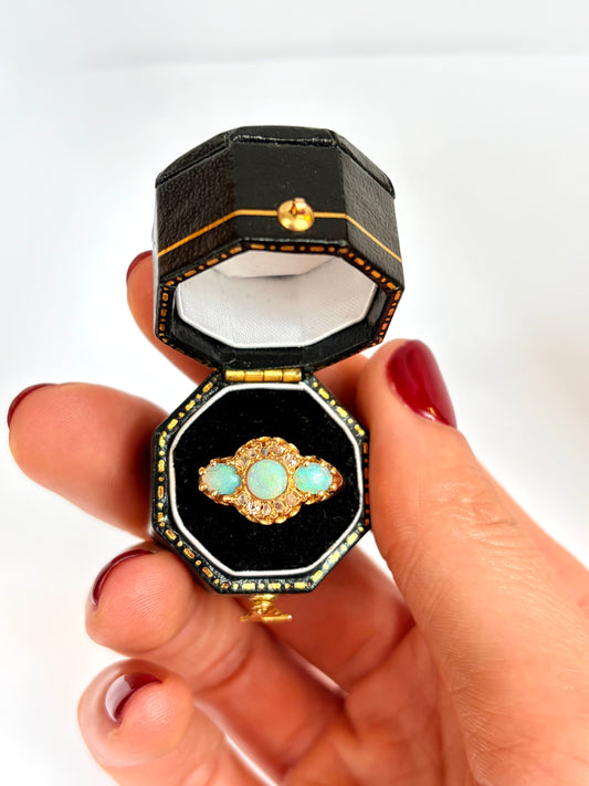 Antique 18ct Gold Opal and Rose Cut Diamond Ring, Hallmarked BIrmingham 1908