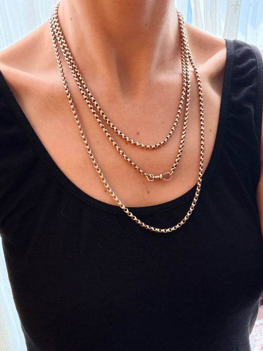 Heavy, Antique, 9ct Gold Victorian Long Guard Chain, 64 inches, 50.66g