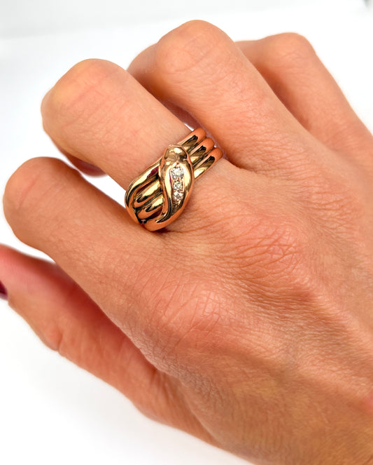 Stunning, Antique, 9ct Rosy Gold Snake Ring, Hallmarked for Chester, 1918