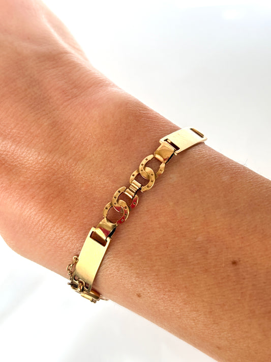 Arts and Crafts Muurle Bennett Horse Shoe/ID Bracelet in 9ct Gold