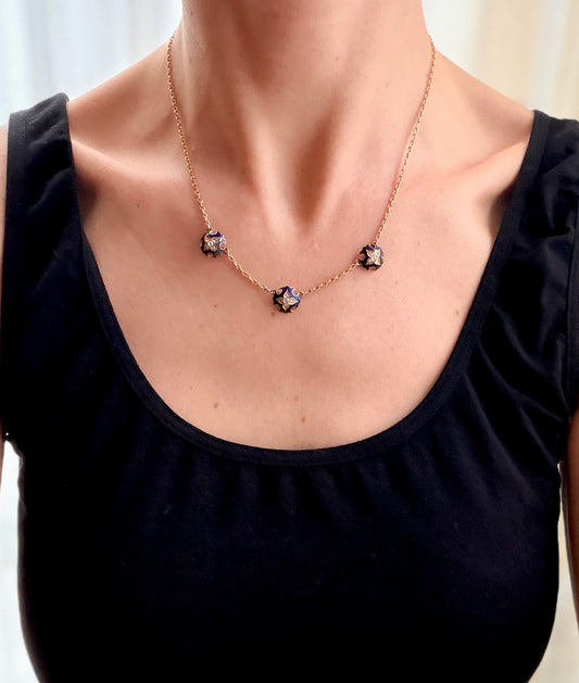 18ct Gold, Victorian Blue Enamel Star Diamond Necklace, 9g