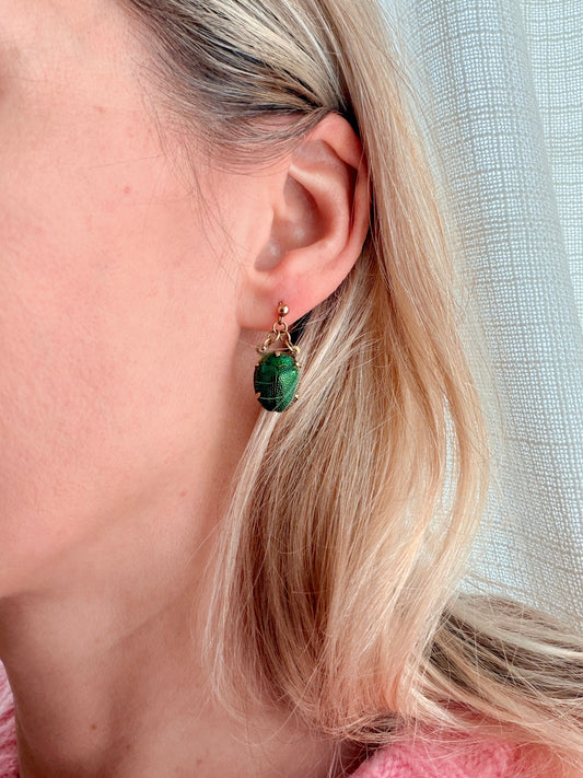 Victorian, 9ct Gold Scarab Beetle Earrings