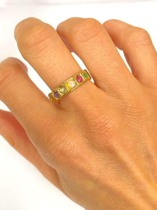 Vintage, 18ct Gold Multigem Acrostic, 'ADORE' ring, Hallmarked 18ct Gold, Birmingham, 1911