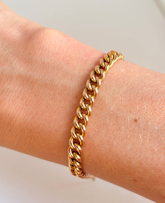 Vintage 15ct Gold Curb Bracelet with hidden clasp and safety chain (7.75 inches)