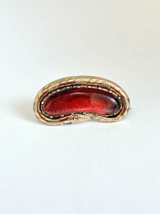 Victorian, 9ct Gold Ouroboros Crystal Locket Brooch