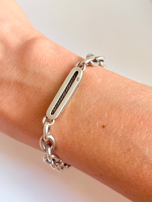 Hallmarked, 10 inch Silver Antique Watch Chain Bracelet or Extender with T bar, and Dog Clip (27.90)