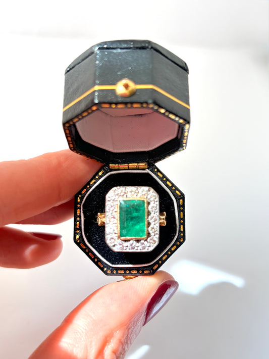 Vintage, 18ct Gold, Emerald and Diamond Cluster Ring, Hallmarked London 1986