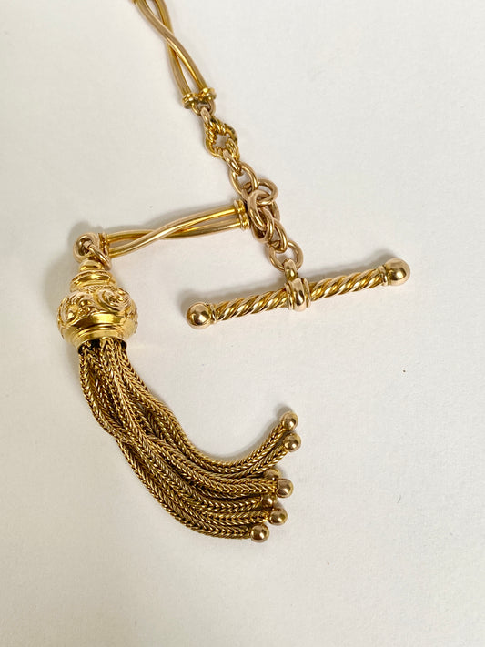 Antique, 9ct Gold Albertina Bracelet with Dog Clip and Heart stations