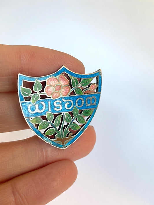 Victorian, Sterling Sliver and enamel 'Wisdom' brooch