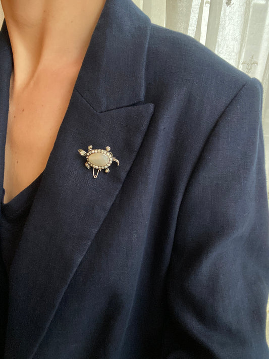 Antique, Silver, Mother of Pearl Diamond Paste Turtle Brooch