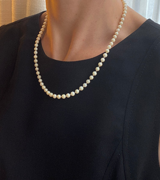Sterling Silver, Vintage River Pearl Necklace with Fancy Clasp.