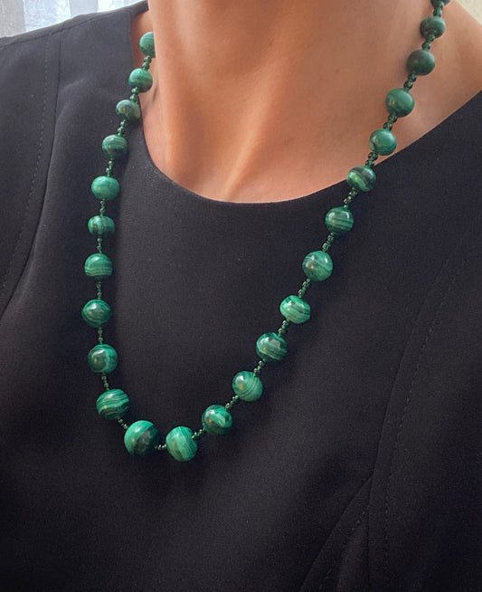 Stunning Vintage Malachite Bead Necklace 22.5 inches (82.32g)