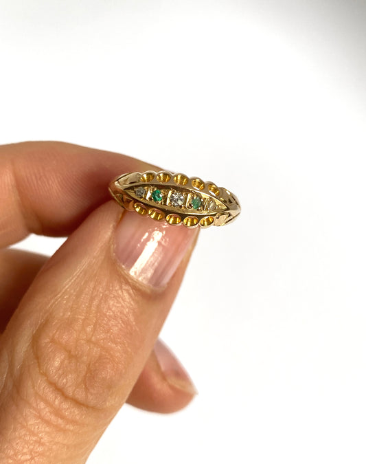 Antique, Edwardian 18ct Gold, Emerald and Diamond Ring, Hallmarked Chester, 1903