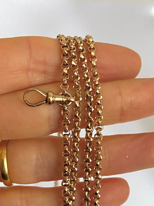 57 inch, Antique, Rolled Gold Victorian Long Guard Chain with Dog Clip 23.6g