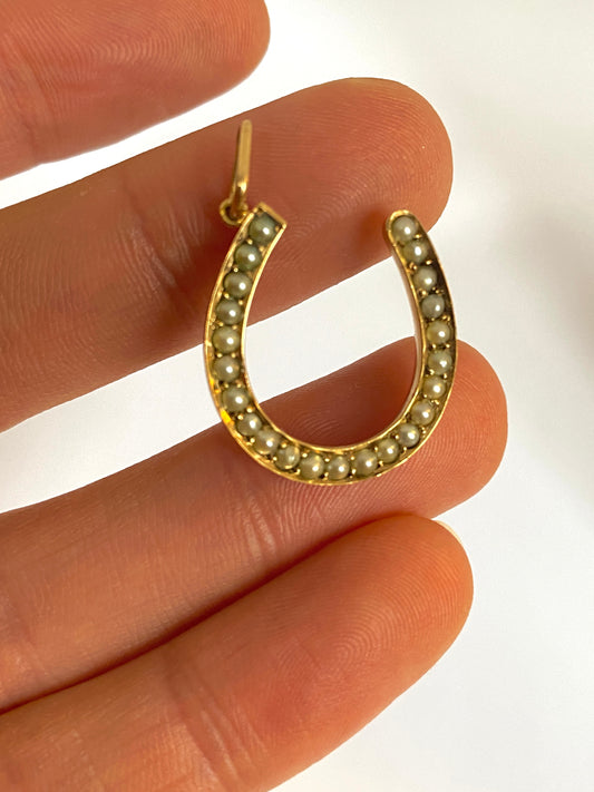 9ct Gold, Rare, Antique, Turquoise Enamel Kidney Bean Lucky Charm, Hallmarked 9ct Gold