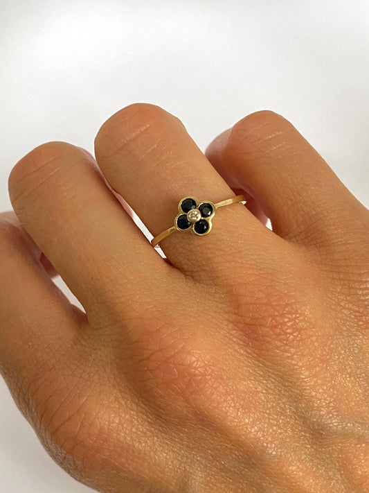 Antique 18ct Gold Ruby and Rose Cut Diamond Flower Ring, Hallmarked 18ct Gold