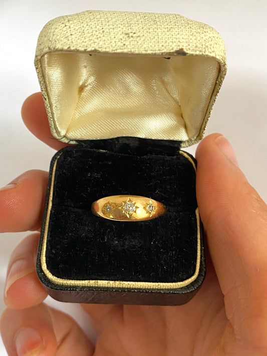 Antique, 18ct Gold, Old Cut Diamond, 3 Star, Gypsy Ring, Hallmarked 18ct Gold