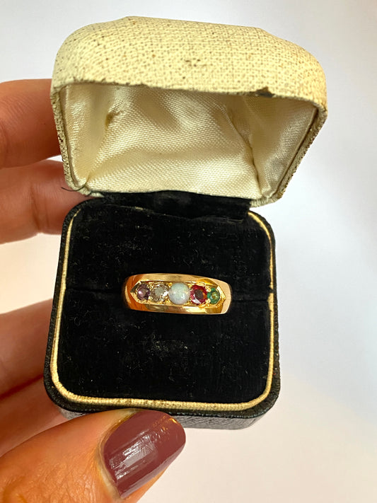 Vintage, 18ct Gold Multigem Acrostic, 'ADORE' ring, Hallmarked, 18ct Gold, 1943