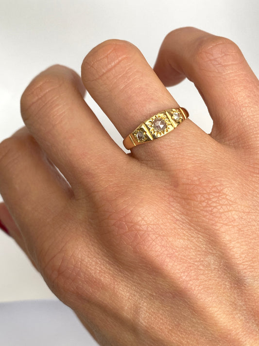 Vintage, 18ct Gold, Old Cut Diamond, 3 Star, Gypsy Ring, Hallmarked 18ct Gold