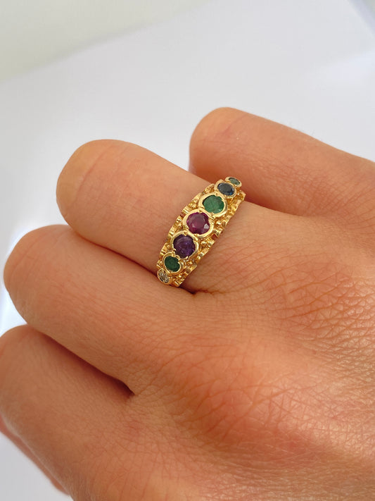 Vintage, 9ct Gold, Dearest, Acrostic Multi Gemstone Ring, Hallmarked London 1973