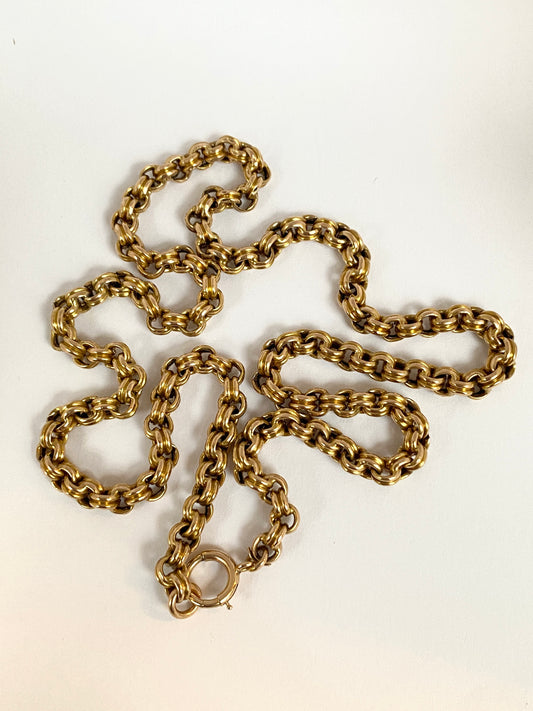 Rare, Chunky, Hallmarked, 15ct Gold Double Belcher Chain with Bolt Ring.