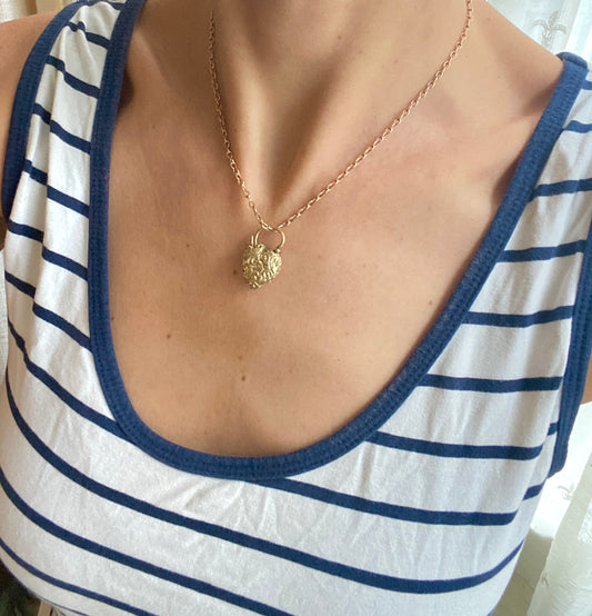 Antique, Victorian, 9ct Gold Puffy Heart Locket with 9ct Gold Chain, Hallmarked, Chester, 1901