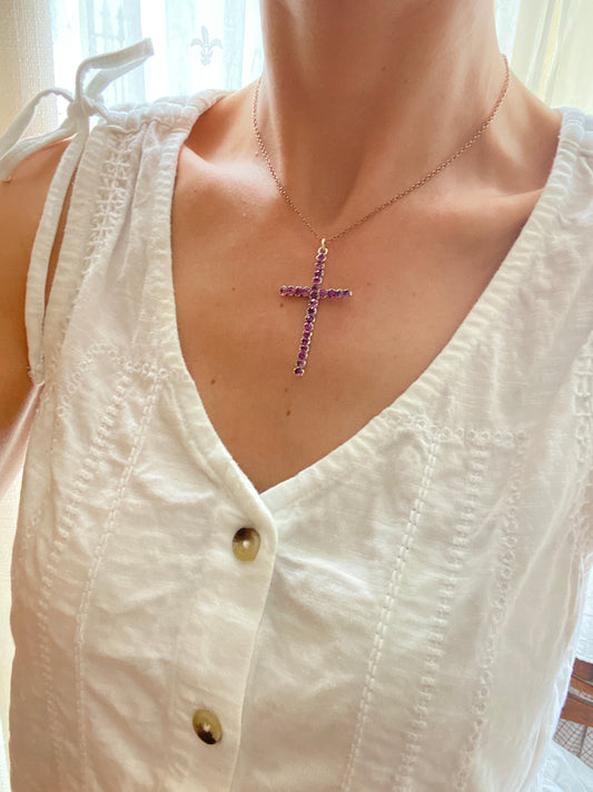 Victorian, Silver and Gold Rhodelite Garnet Cross