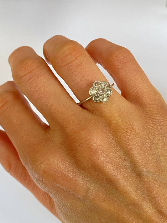 Edwardian, 9ct White Gold Old Cut Diamond Cluster /Daisy Ring