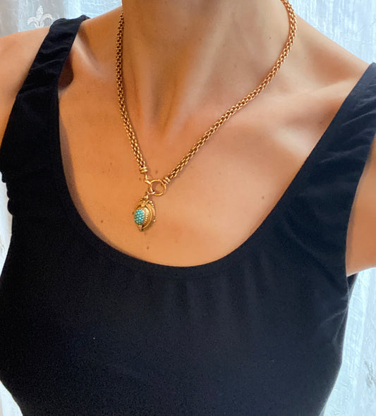 Antique, Unique Rolled Gold Longuard Chain, with Sapphire Paste and Faux Pearl slider (18.79g) 52 inches