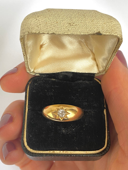 18ct Gold, Antique, Ruby And Diamond Gypsy Ring, Hallmarked for 18ct Gold, Birmingham