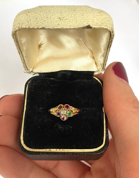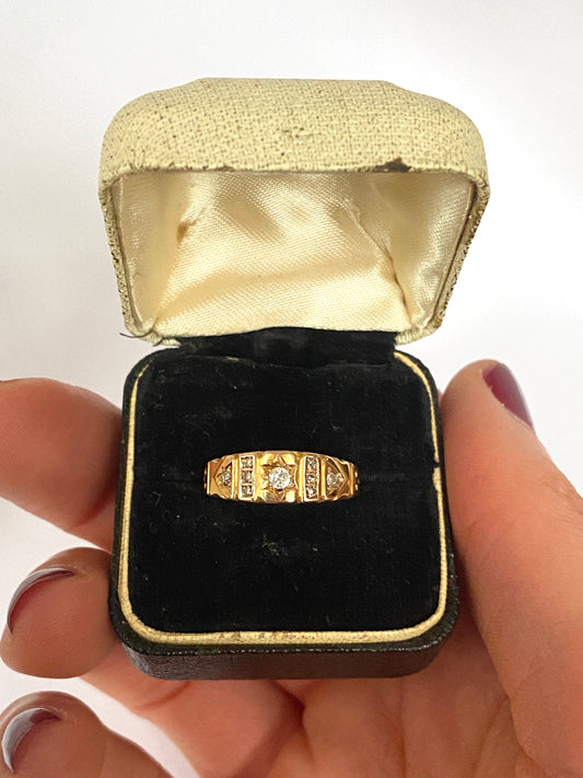 Victorian, 15ct Gold Diamond Gypsy Ring, Hallmarked Birmingham, 1890