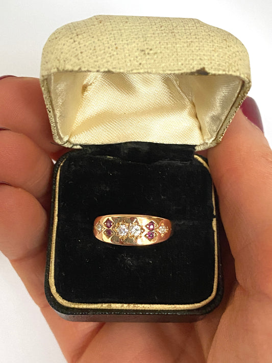 Antique, Victorian, 15ct Gold Ruby and Diamond Gypsy Ring, Hallmarked Birmingham, 1881