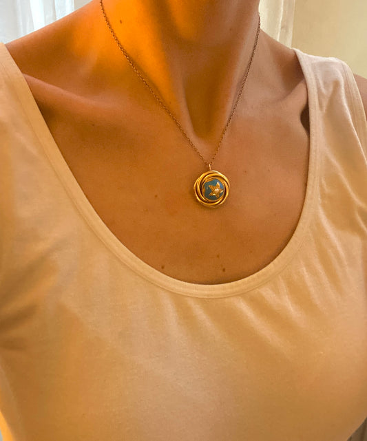 Good sized, Victorian, 18ct Gold, Turquoise Blue Enamel and Seed Pearl Star Pendant