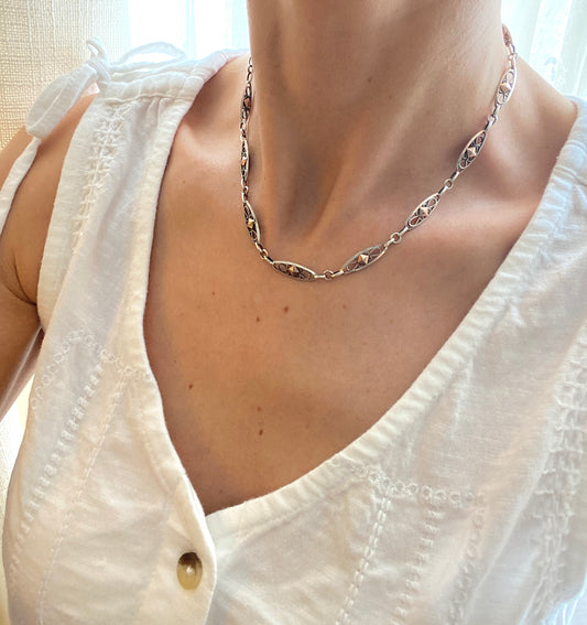 Antique, French Silver and Rose Gold, 16.5 inch Filigree chain, 12.50g