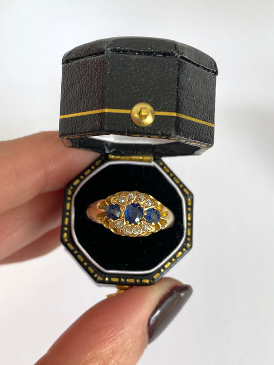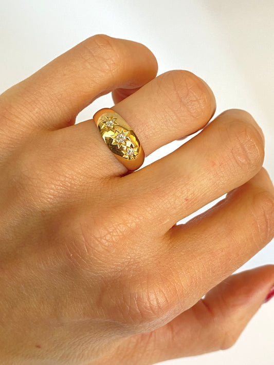Antique, 18ct Gold, Triple Diamond Gypsy Ring, Hallmarked Birmingham, 1912