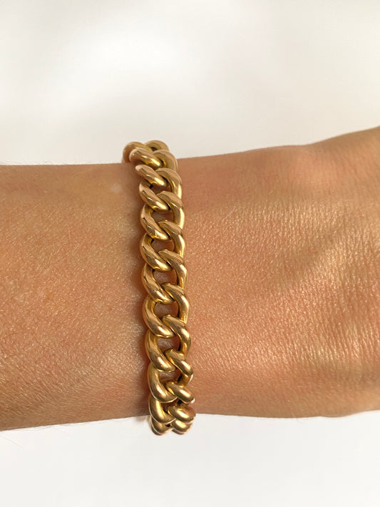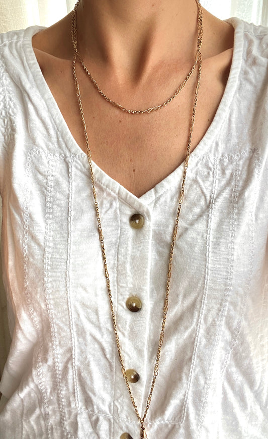 15 inch, 9ct Gold Antique Trombone/Fetter Link Chain with T bar and Dog Clips