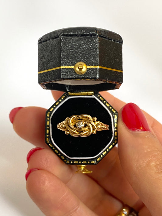 Antique, 18ct Gold Diamond Starburst Buckle Ring, Hallmarked for Birmingham, 1913