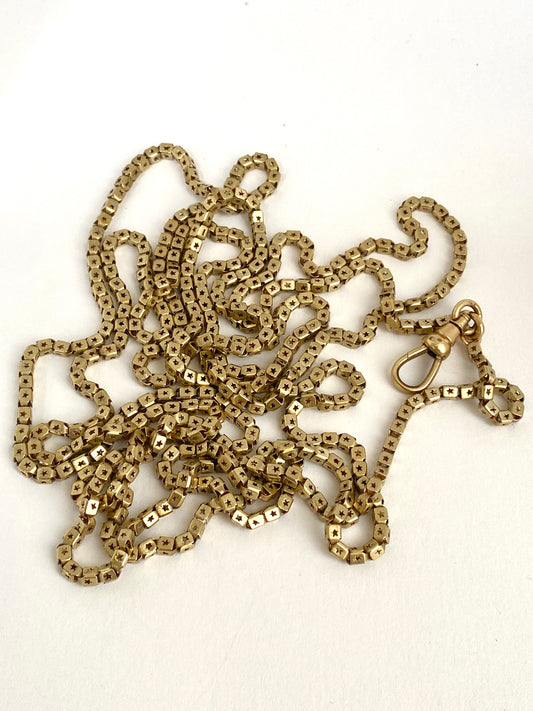 Antique, Pinchbeck Victorian Pierced Link Long Guard chain 52 inches, 22.19g