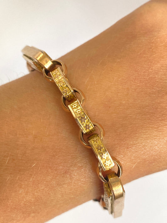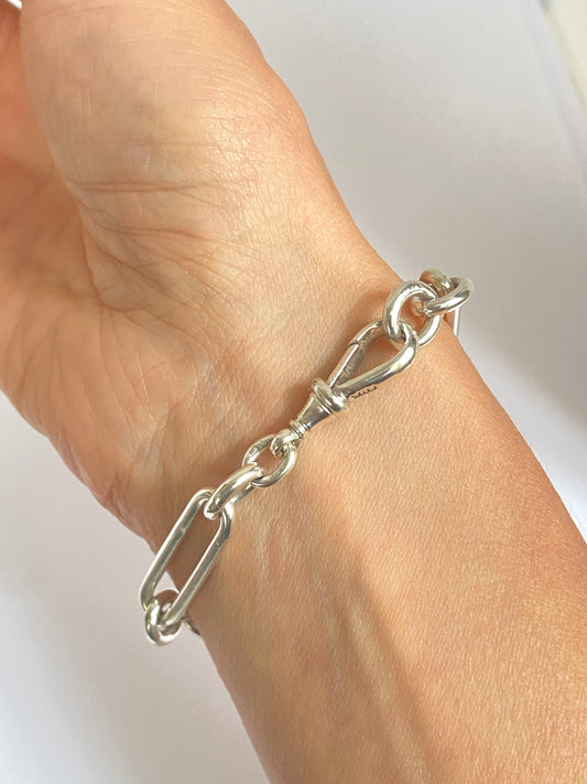 Hallmarked, 7.5 inch Sterling Silver Antique Trombone Link Bracelet (24.4g)