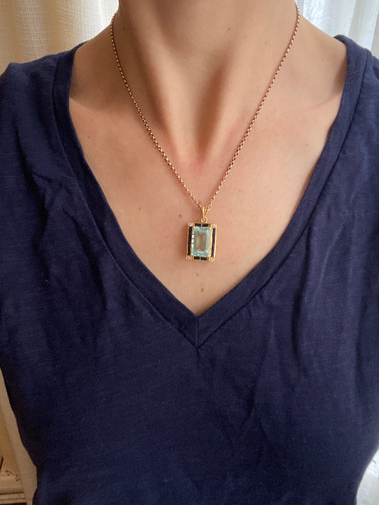18ct Gold, Vintage, Aquamarine, Sapphire and Diamond Rectangle Pendant