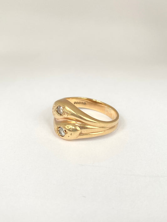 9ct Gold Vintage 9ct Gold, Double Diamond Double Snake Ring, Hallmarked London, 1961
