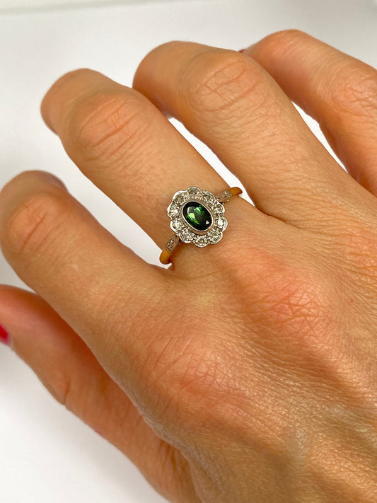 Wonderful, Vintage, 18ct Gold and Platinum Tourmaline and Diamond Cluster Ring