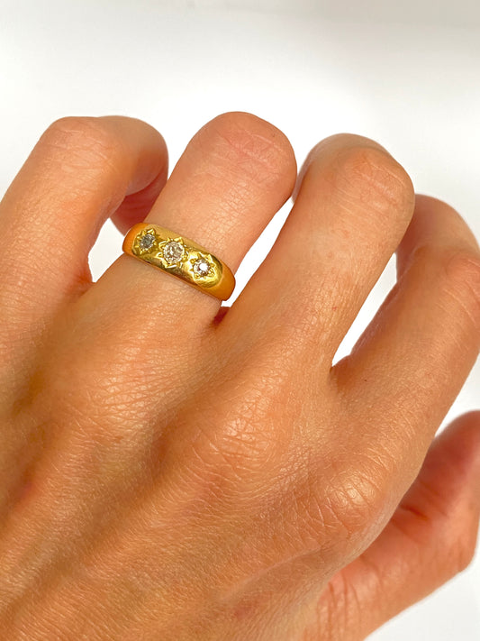 Vintage, 18ct Gold, Old Cut Diamond, 3 Star, Gypsy Ring, Hallmarked 18ct Gold