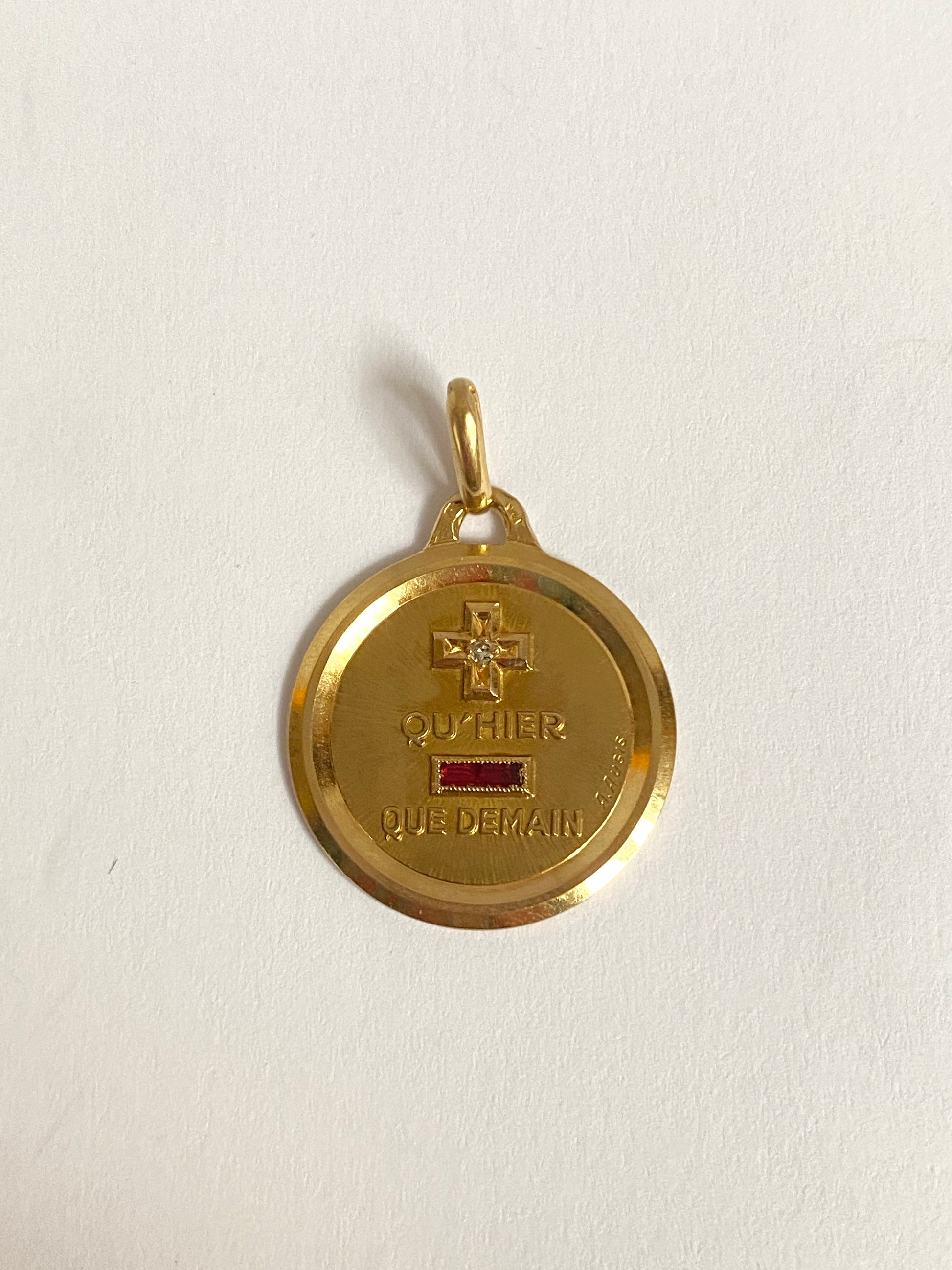2nd payment Antique, 18ct Gold, Diamond and Ruby French Augis Love Pendant, 'Qu'hier - Que demain'