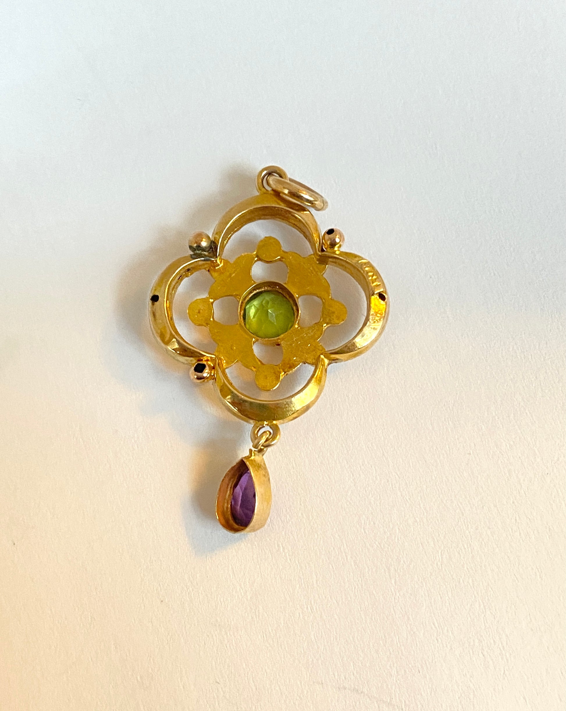 9ct Gold, Edwardian Suffragette (Amethyst, Peridot and Diamond) Pendant