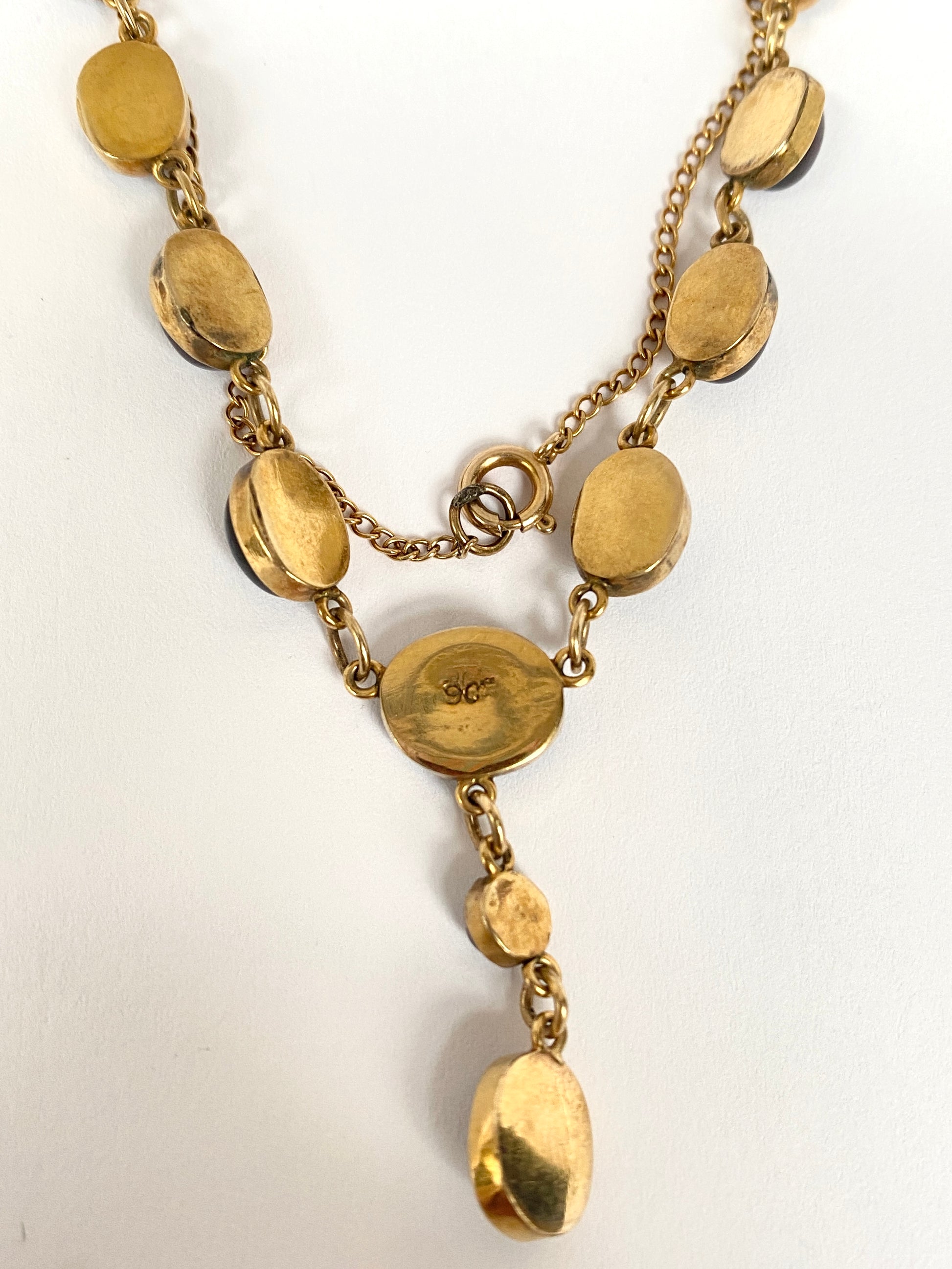 9ct Gold, Victorian, Garnet Bezel Fringe Necklace, 16 inches