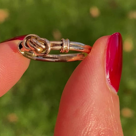Antique lover's knot rings date back to the early 20th century and are steeped in sentimentality with the knot symbolising two people entwined for eternity; hence why they are often given as romantic tokens or as eternity rings.