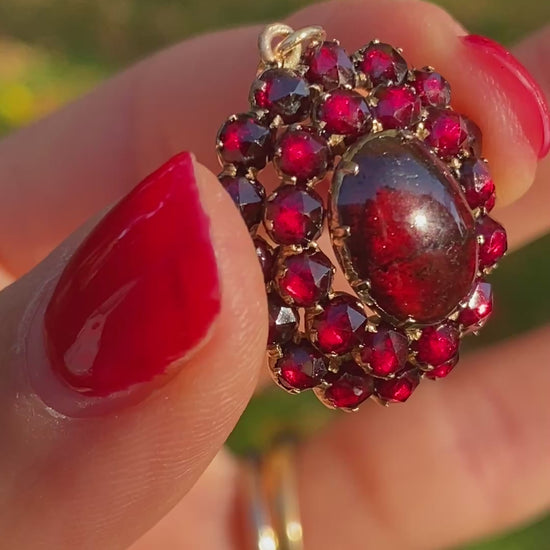 Superb, Antique, 9ct Gold, Garnet Cluster Pendant