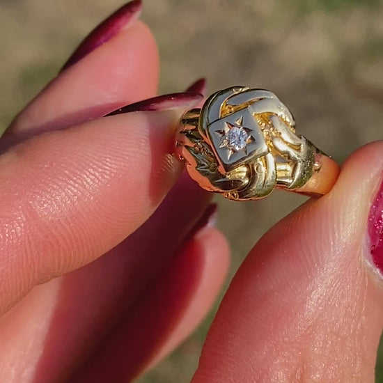 Antique, 18ct Gold Lovers Knot Ring with Diamond, Hallmarked 18ct Gold, London and 1918