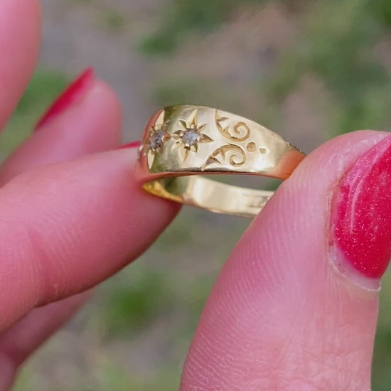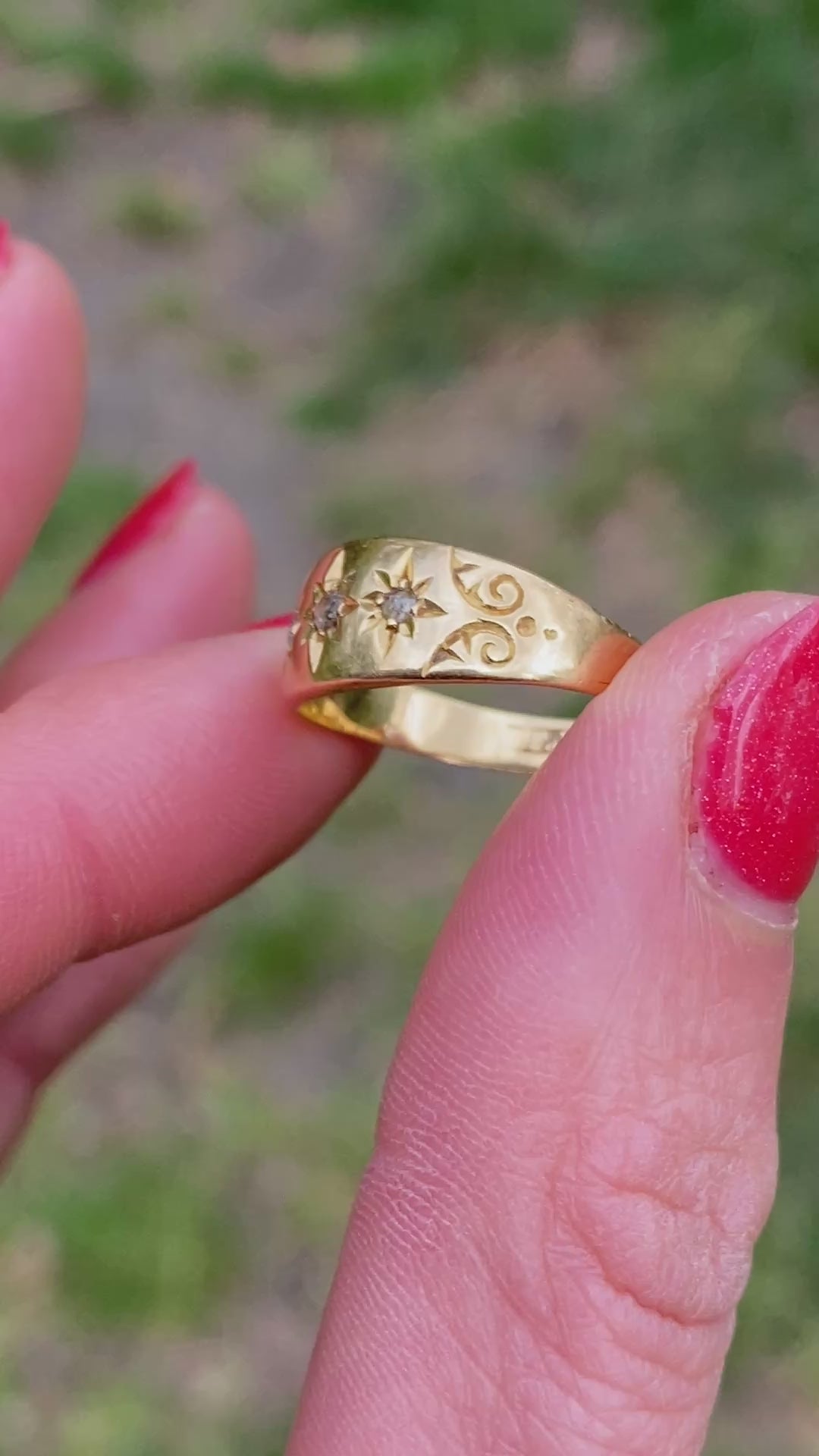 Antique, 18ct Gold, Old Cut Diamond, 3 Star, Gypsy Starburst Ring, Hallmarked Birmingham, 1911